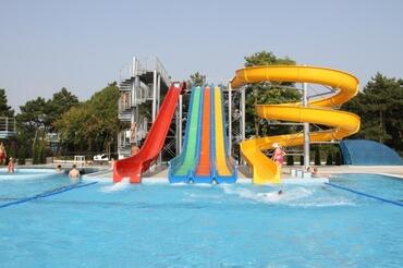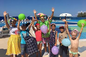- Детский сервис: для самых маленьких гостей предоставляется бесплатно детская кроватка (до 3х лет).В открытом бассейне выделена специальная зона, есть аквапарк с горкой, игровой комплекс. Ежедневно проводится анимация в виде спортивных и развивающих игр, красочных представлений, курсов рукоделия и прочего. Работает детская комната с педагогом, в столовой предоставляется по запросу детские стульчики.