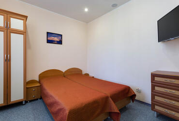 В номере: 4-е односпальные раздельные кровати, санузел (туалет, умывальник, душ, фен), теле...