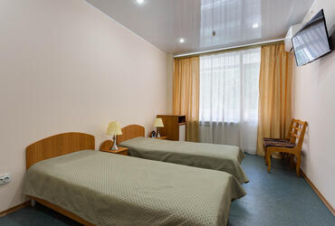 В номере: 2-е односпальные раздельные кровати, санузел (туалет, умывальник, душ, фен), теле...