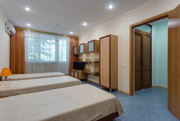 - Номерной фонд: пансионат Солнечный предлагает номера для размещения как 2х человек, так и для больших семей численностью до 6 человек. В пансионате много 2х комнатных номеров с изолированными комнатами и оснащенных полноценными кухонными уголками.