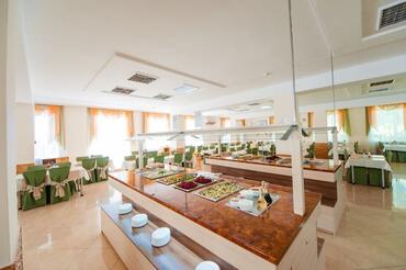 - Питание по системе “шведский стол”: здоровое и качественное 3х разовое питание, разнообразие блюд на шведском столе, сезонные фрукты и овощи ежедневно радуют отдыхающих пансионата.