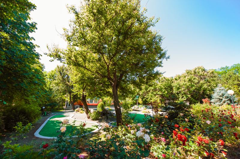 - Пользование инфраструктурой пансионата: бассейны и аквапарки, спа-зона с гидромассажем, анимация, летний кинотеатр, спортивные площадки (волейбол, футбол, баскетбол, бадминтон, теннис) и тренажерный зал, библиотека, детская игровая площадка, прачечная с оборудованием и гладильная комната, интернет Wi-Fi.