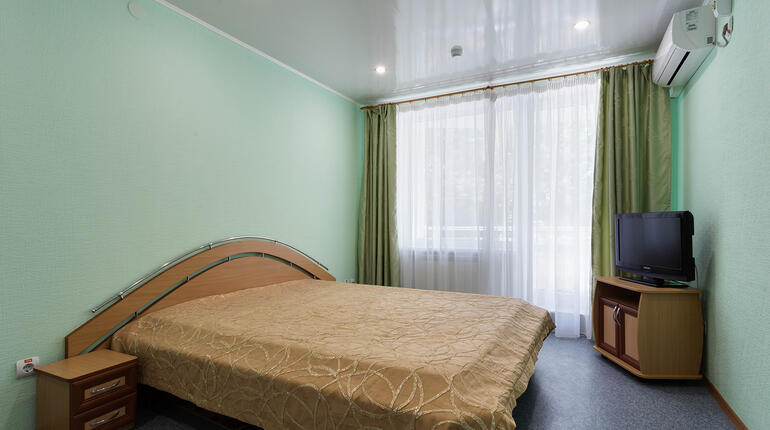В номере: односпальная кровать, санузел (туалет, умывальник, душ, фен), телевизор, холодиль...