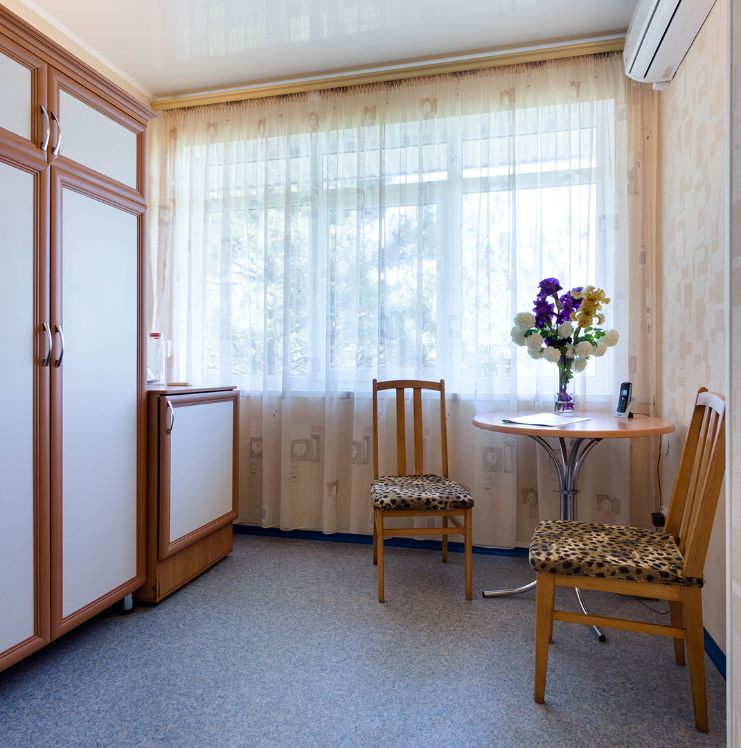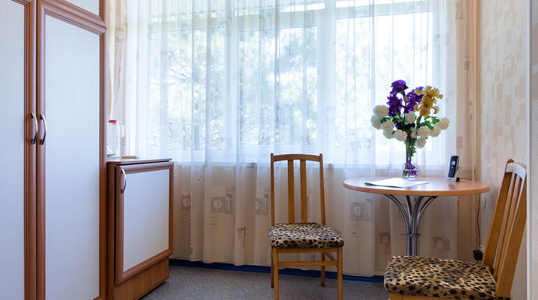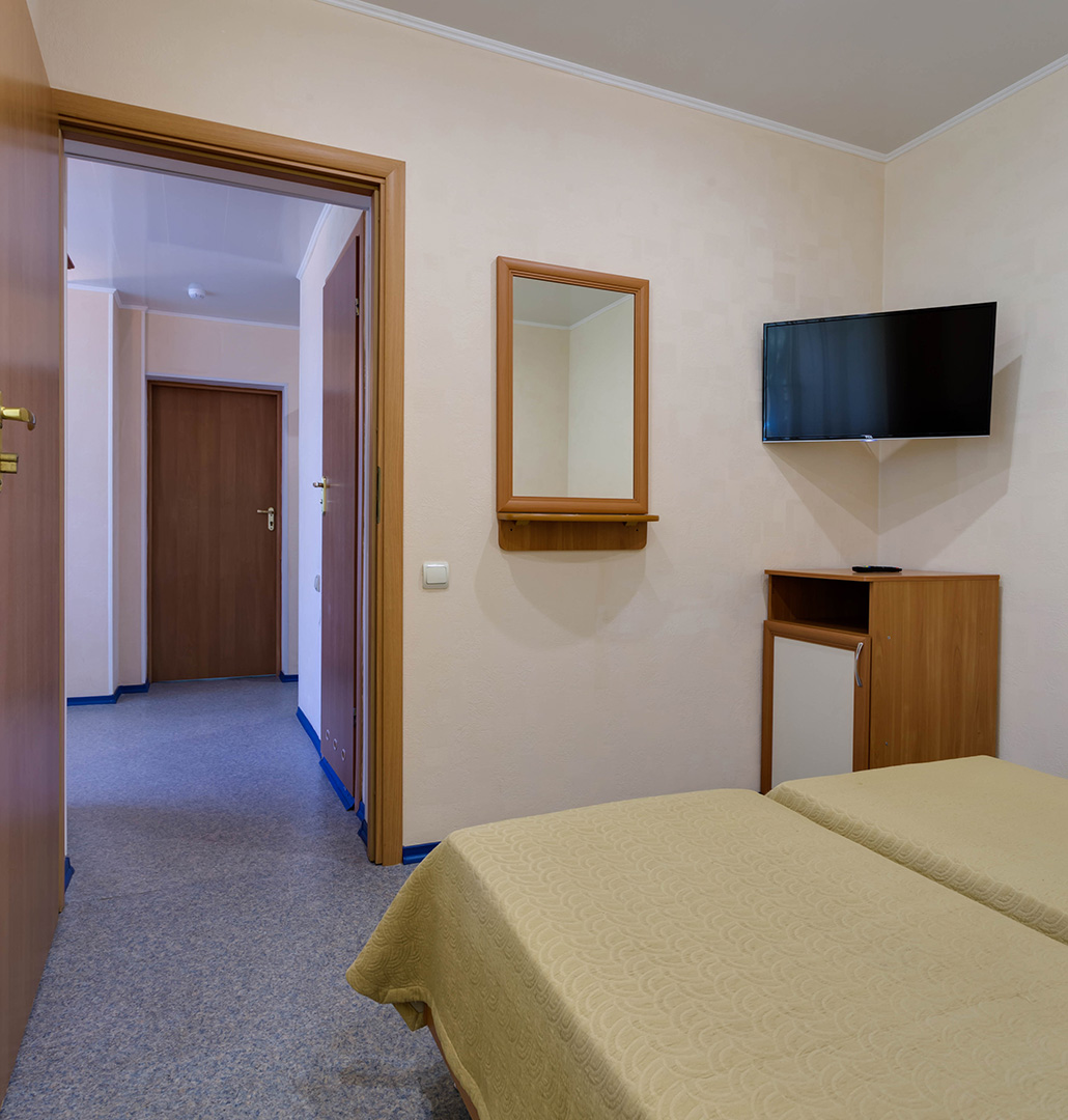В номере: односпальная кровать, санузел (туалет, умывальник, душ, фен), телевизор, холодиль...