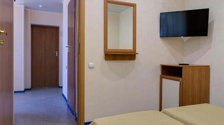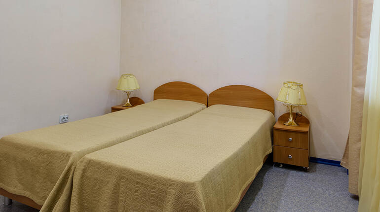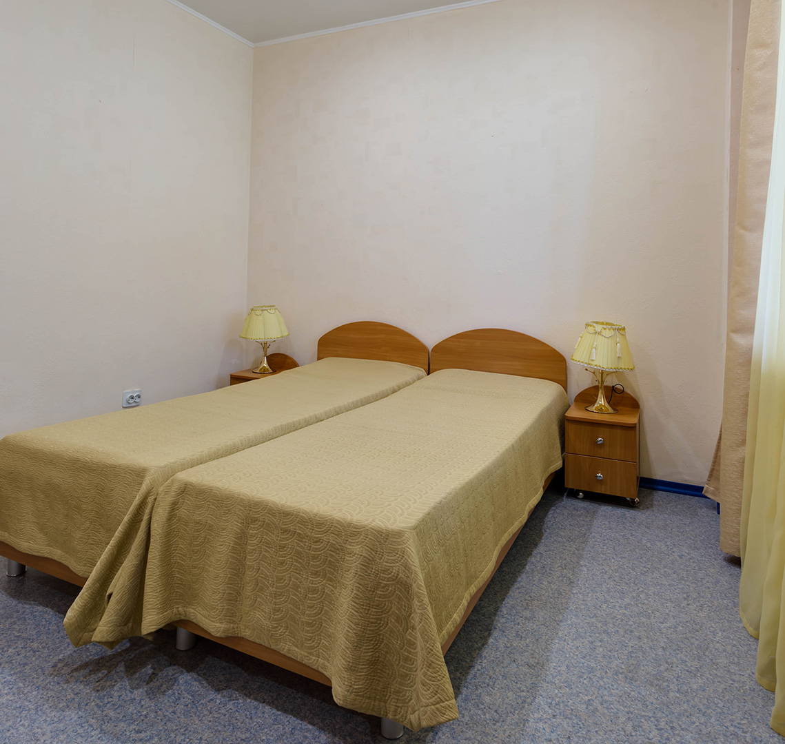 В номере: в спальне — 2х спальная кровать, санузел (туалет, умывальник, ванная, фен,...