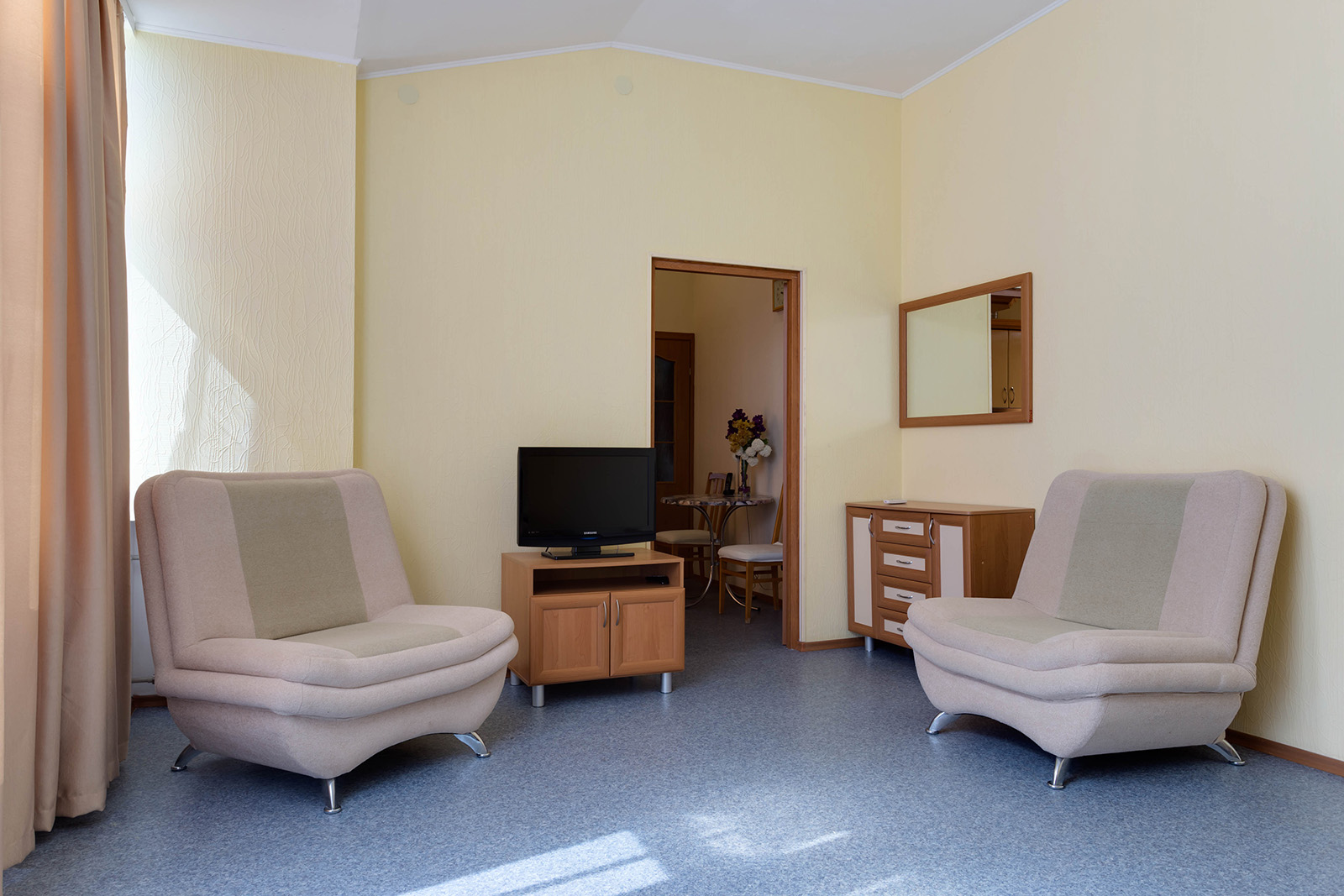 В номере: в спальне — 2х спальная кровать, санузел (туалет, умывальник, ванная, фен,...
