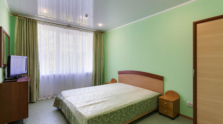 В номере: в спальне — 2х спальная кровать, санузел (туалет, умывальник, ванная, фен,...
