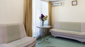 Во 2й спальне — односпальная кровать, диван, два кресла, гардеробная, гладильная доска.
