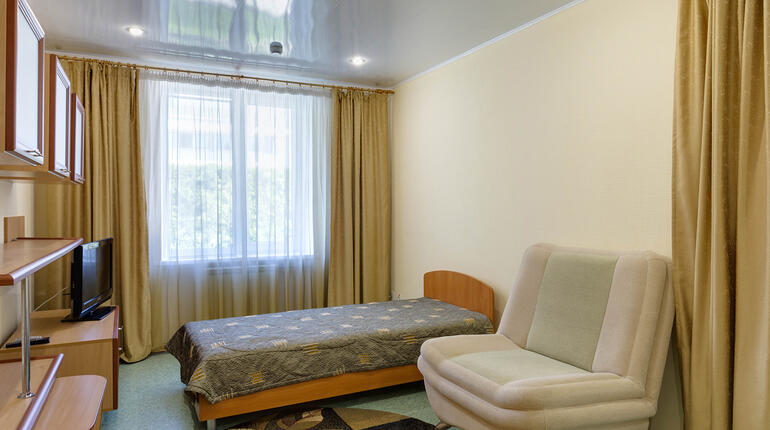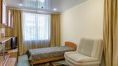 В номере: 3-ти односпальные раздельные кровати, санузел (туалет, умывальник, душ, фен), тел...